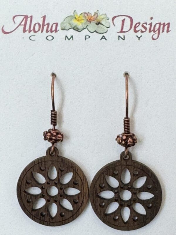 Carved Walnut Wood Pendant on Antique Copper Hooks
