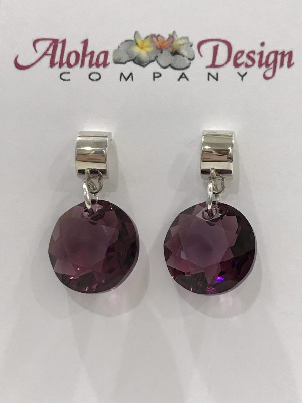 Crystal Amethyst Classic Cuts on Bali Sterling Half Loop Posts