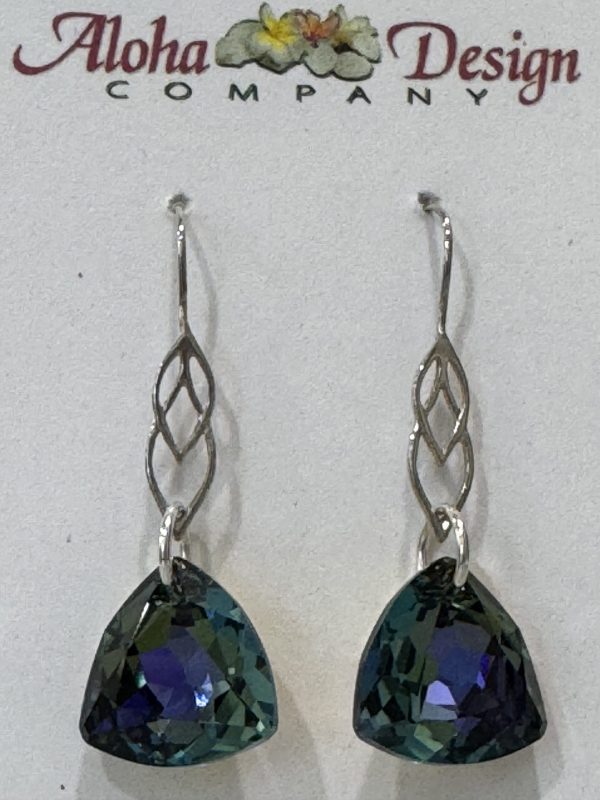 Crystal Aquamarine Blend Trilliant Cuts on Sterling Double Marquis Hooks
