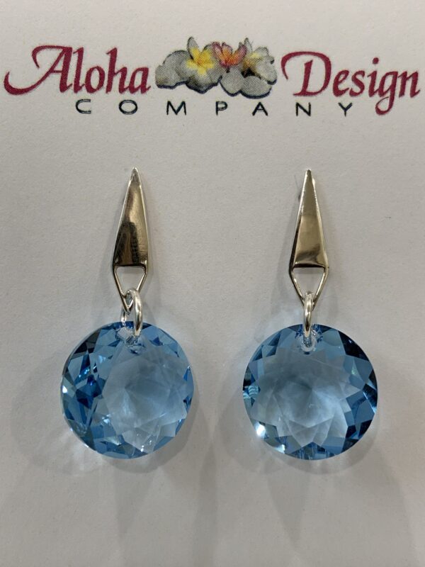Crystal Aquamarine Classic Cuts on Bali Handcrafted Sterling Silver Triangle Posts