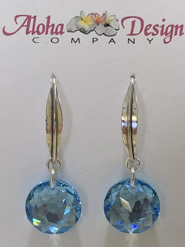 Crystal Aquamarine Shimmer Classic Cuts on Bali Handcrafted Sterling Silver Almond Hooks