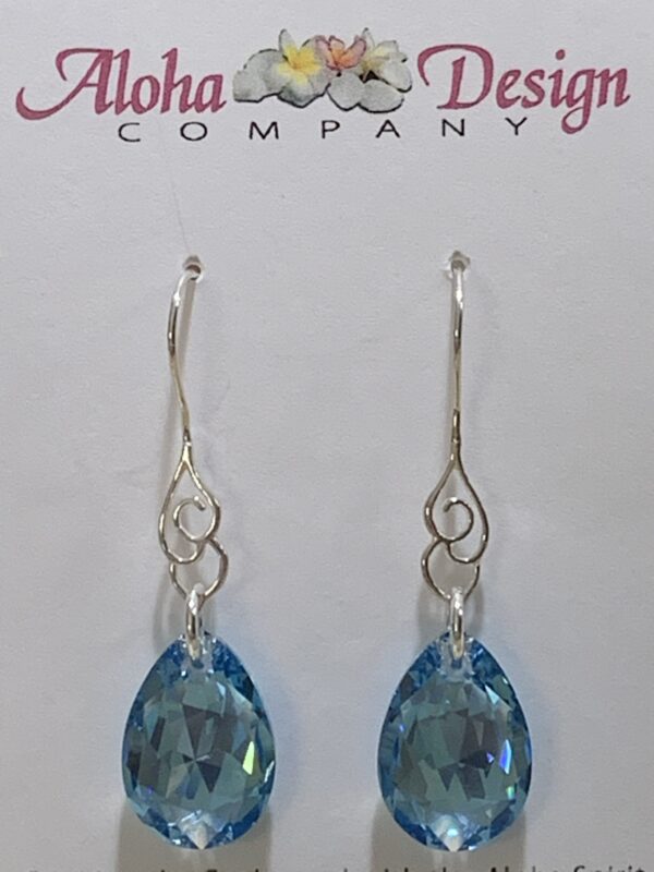 Crystal Aquamarine Shimmer Pear Cuts on Sterling Silver Cloud Hooks