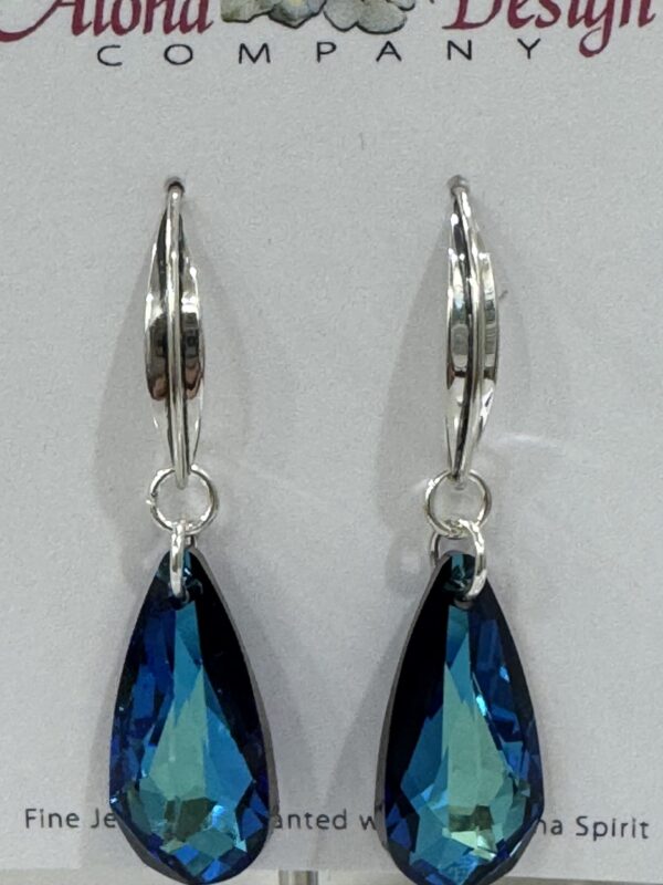 Crystal Bermuda Blue Teardrop Cuts on Handcrafted Bali Sterling Almond Hooks