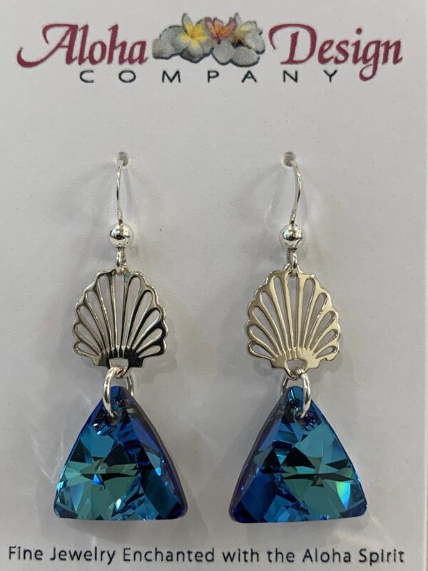 Crystal Bermuda Blue Triangle Cuts on Bali Sterling Scallop Shells & Sterling Hooks
