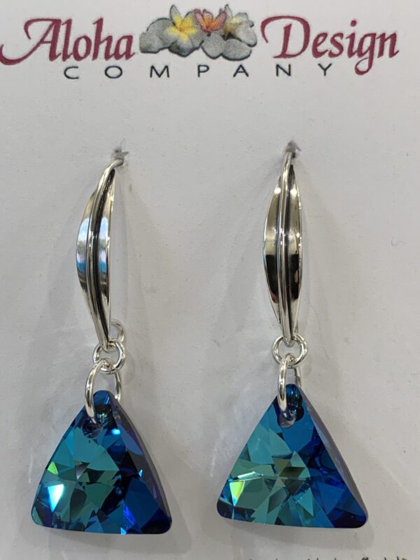 Crystal Bermuda Blue Triangle Cuts on Bali Sterling Silver Almond Hooks