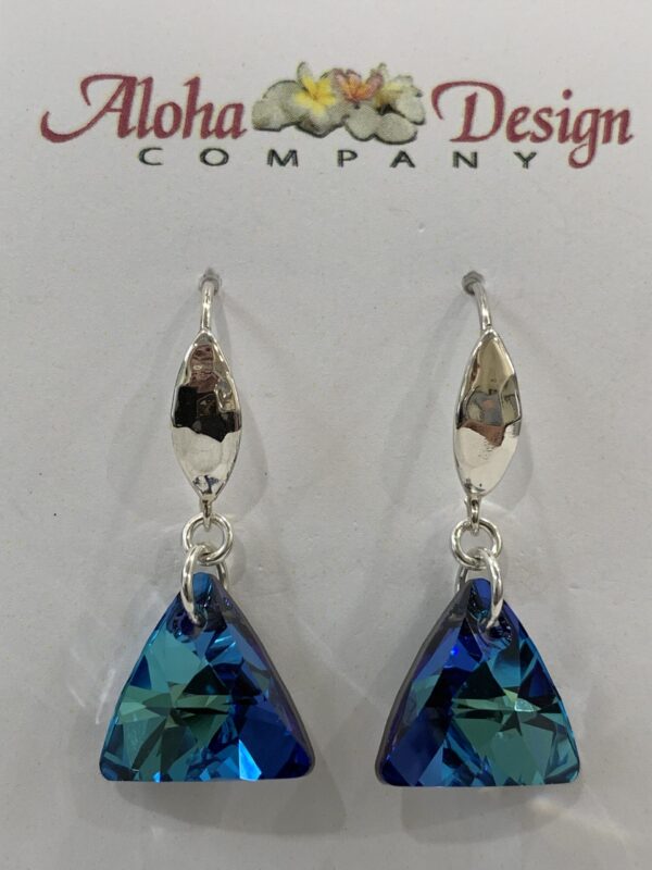 Crystal Bermuda Blue Triangle Cuts on Handcrafted Bali Sterling Teardrop Hooks