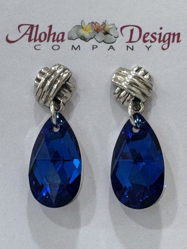 Crystal Capri Blue Grande Pears on Bali Sterling Kiss Posts