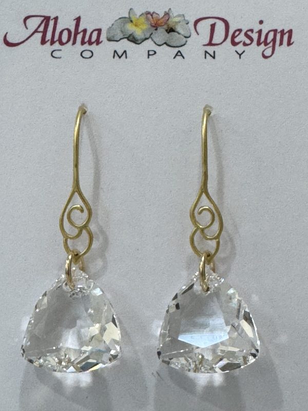 Crystal Clear Trilliant Cuts on 14K Gold Vermeil Cloud Hooks