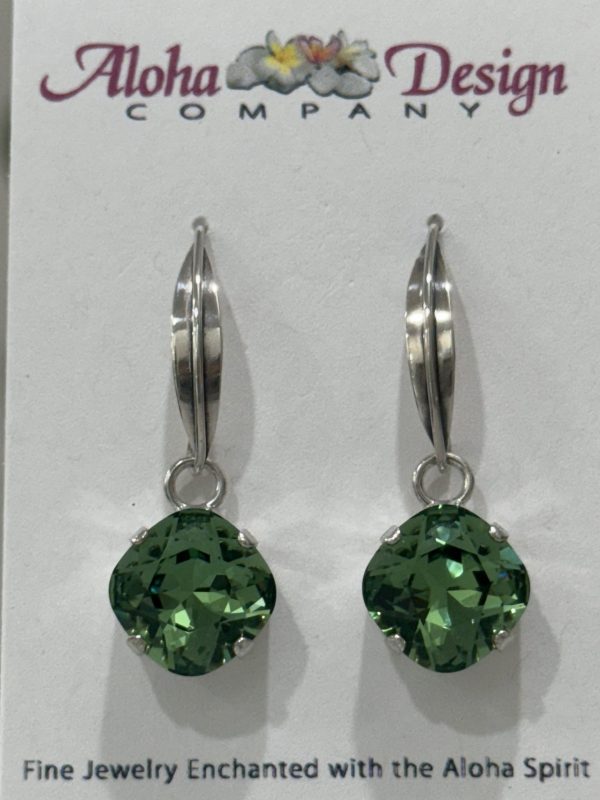 Crystal Erinite Green Jewel Drops on Bali Sterling Almond Hooks