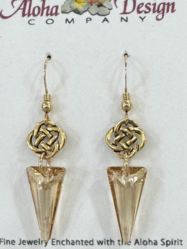 Crystal Golden Shadow Spikes with Celtic Knots on 14K Gold Vermeil Hooks