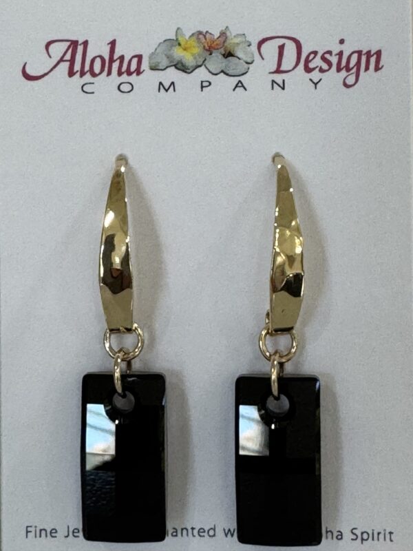 Crystal Jet Black Urban Cuts on Handcrafted Bali Bronze Hammered Long Hooks