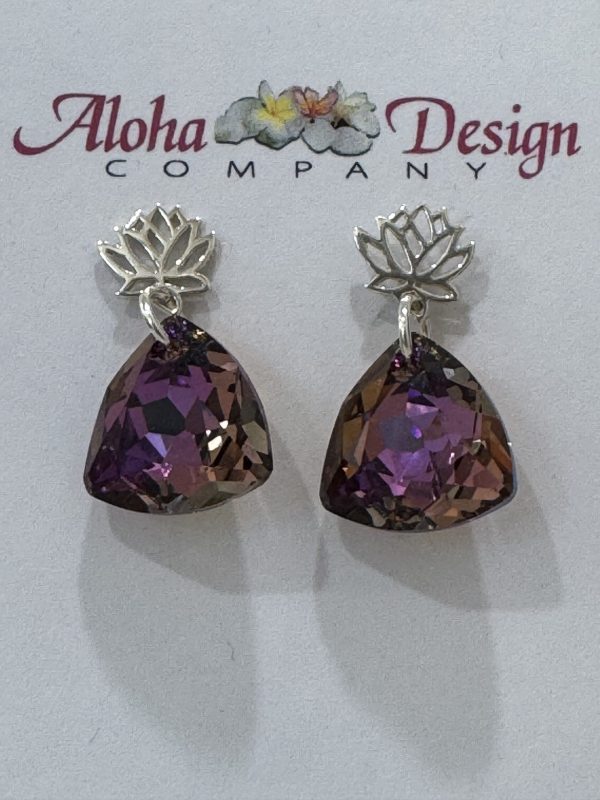 Crystal Light Rose Blend Trilliant Cuts on Bali Sterling Lotus Posts