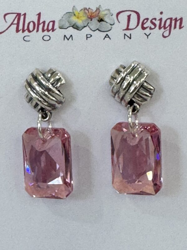 Crystal Light Rose Shimmer Emerald Cuts on Handcrafted Bali Sterling Kiss Posts