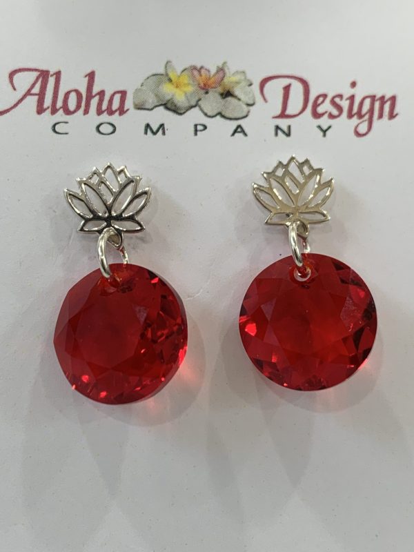 Crystal Light Siam Classic Cuts on Bali Sterling Lotus Posts