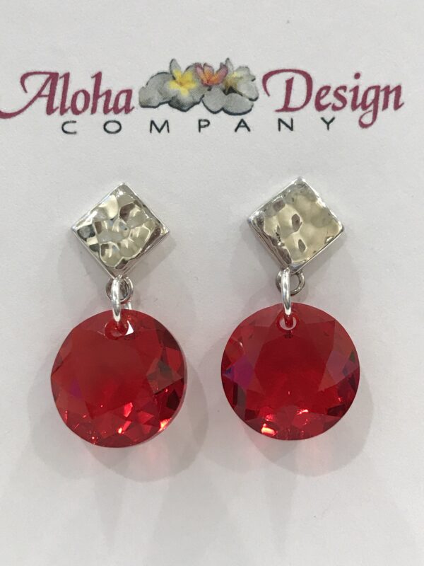 Crystal Light Siam Classic Cuts on Handcrafted Bali Sterling Silver Hammered Diamond Posts