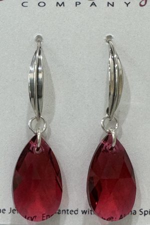Crystal Light Siam Pear Cuts on Bali Sterling Marcasite Almond Hooks