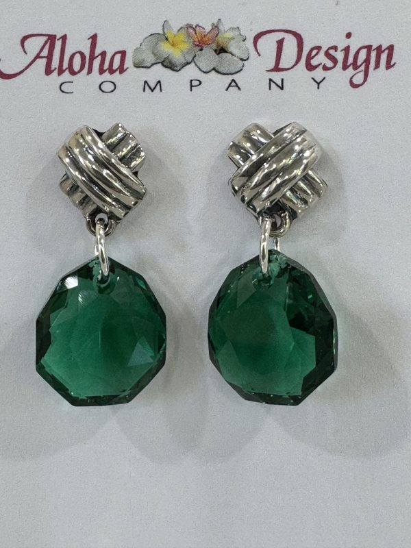 Crystal Majestic Green Majestic Cuts on Bali Sterling Kiss Posts