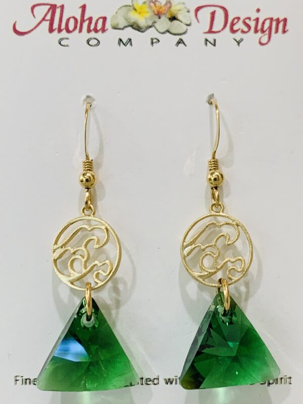 Crystal Majestic Green Triangle Cuts with 14K Gold Vermeil Ocean Surge Links on GF Hooks