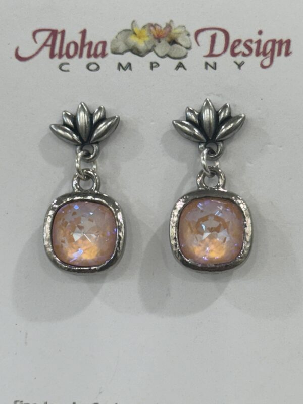 Crystal Peach DeLite Cushions in SP Settings on SP Pewter Lotus Flower Posts