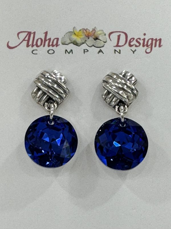 Crystal Sapphire Blend Classic Cuts on Bali Sterling Kiss Posts