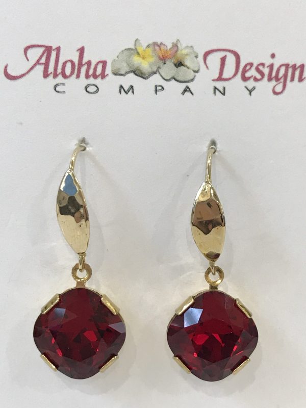 Crystal Siam Jewel Drops on Bali Bronze Teardrop Hooks