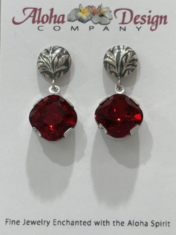 Crystal Siam Jewel Drops on Bali Sterling Willow Posts