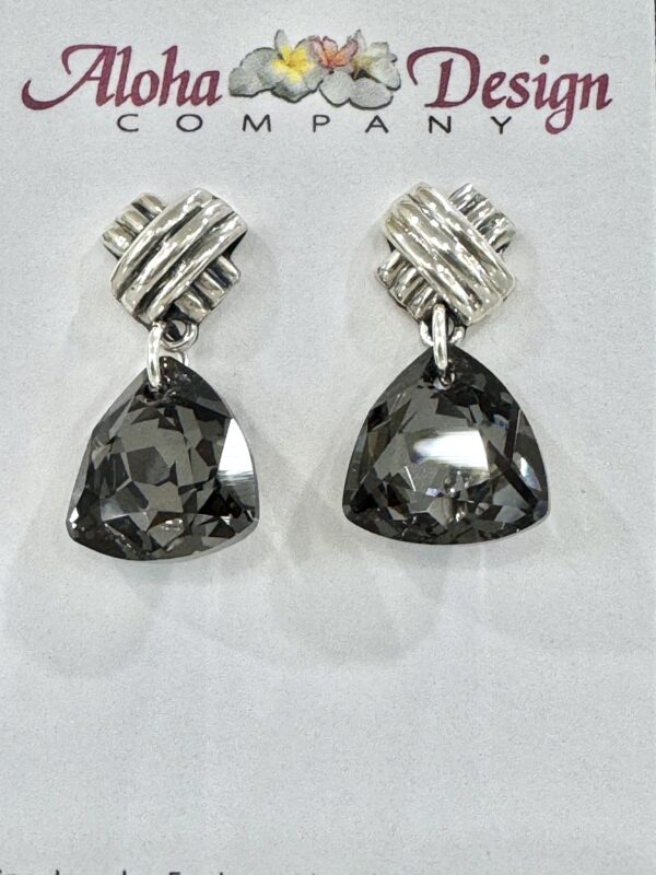 Crystal Silver Night Trilliant Cuts on Handcrafted Bali Sterling Kiss Posts
