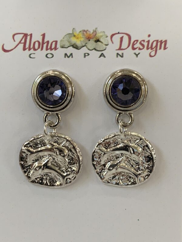 Handcrafted Bali Sterling Silver Ancient Dolphin Coins on Crystal Tanzanite SP Pewter Bezel Posts