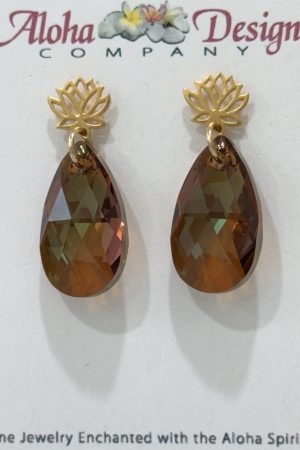 Crystal Copper Grande Pears on Bali 24K Gold Vermeil Lotus Posts